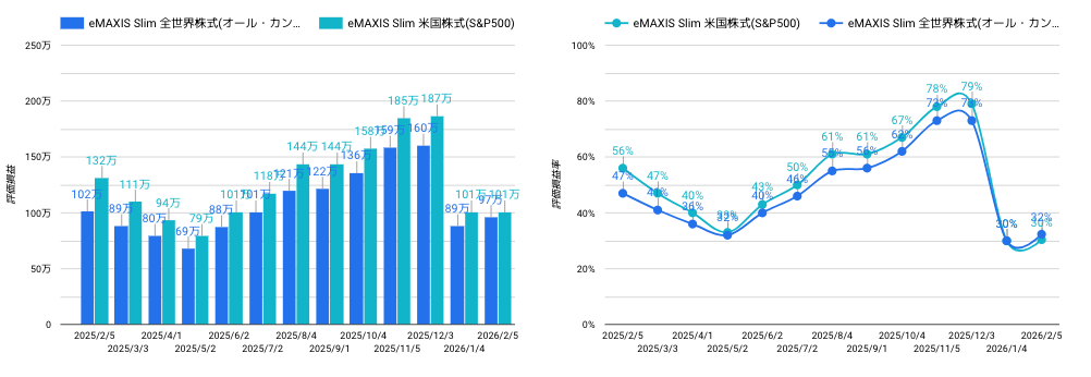 恒例の「全米株式 vs 全世界株式」ジュニアNISA対決も、年初から熱い戦いになっていますよ🔥