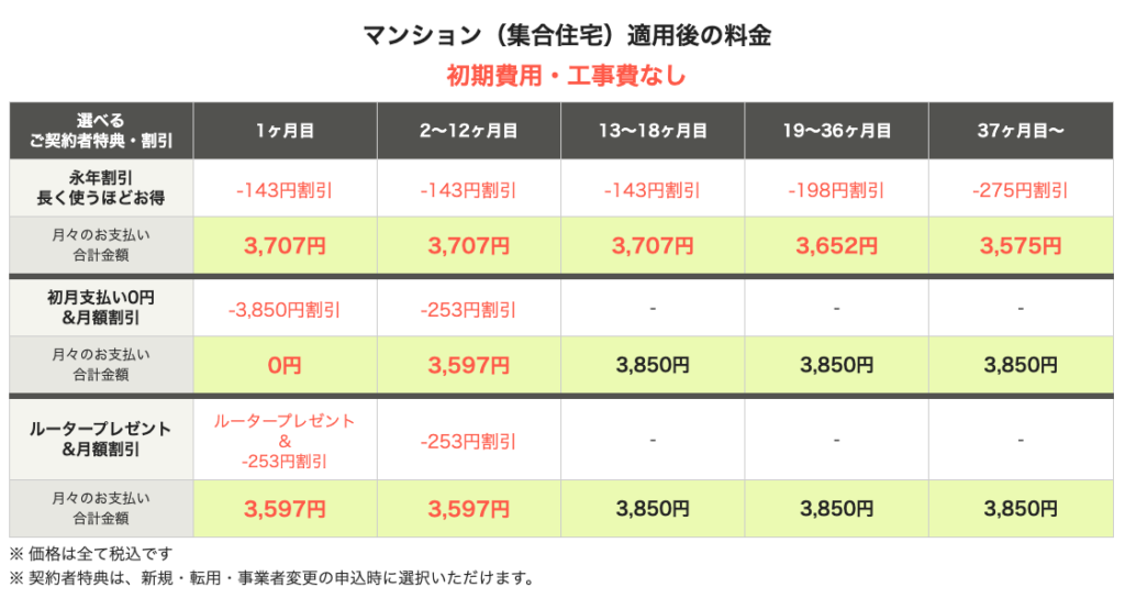 光回線は一度引くと長く使うことが多いもの。「4年以上は使うだろうな」という方は、迷わず「永年割」を選んでおくのが、最終的に一番賢い選択になります。