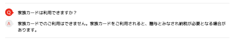 結論から言うと、楽天証券の投信積立に「家族カード」は使えません。