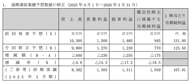 <「2026年3月期通期連結業績予想の修正に関するお知らせ」より>